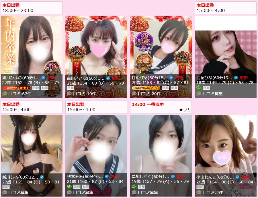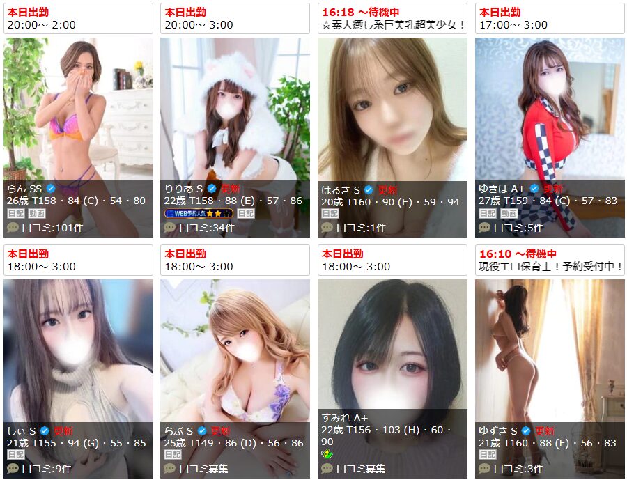 新人さんも続々入店しており、リピーターさんを飽きさせません。また待機中の嬢が多く、今すぐに遊べるのが魅力。