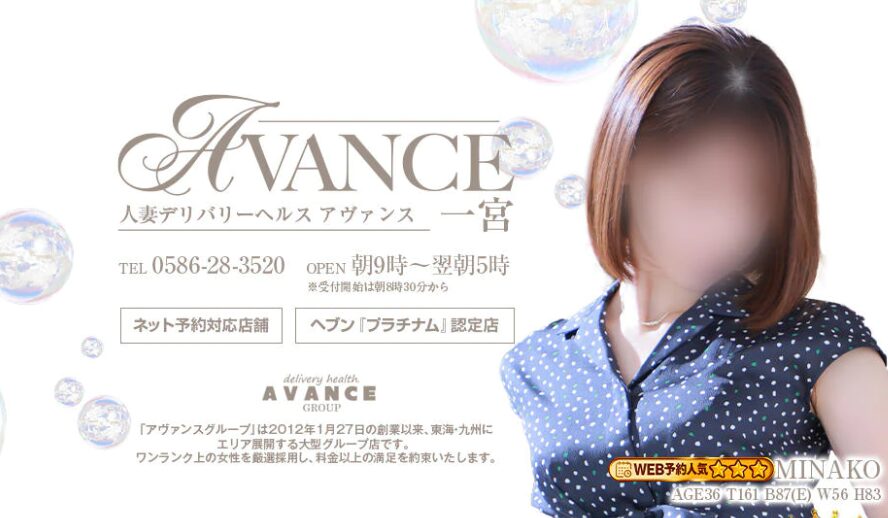 AVANCE(アバンス)一宮は、全国に10店舗を構える大型グループ店です。女性のクオリティに圧倒的な自信があり、ヘブンネットの『ダイヤモンド』認定グループ店に輝いた名店でもあります。