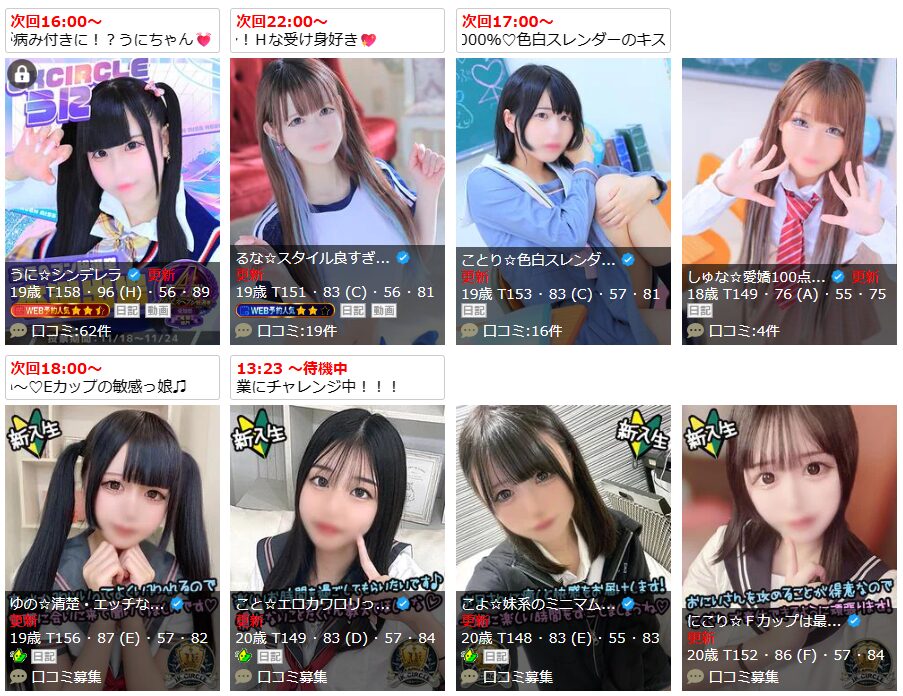 素人の女の子でも、誰が見ても可愛いと思えるレベルがゴロゴロいます。プレイの内容も料金に見合ったものであることが多い印象です。