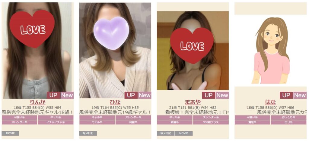 素人の女の子でも、誰が見ても可愛いと思えるレベルがゴロゴロいます。プレイの内容も料金に見合ったものであることが多い印象です。