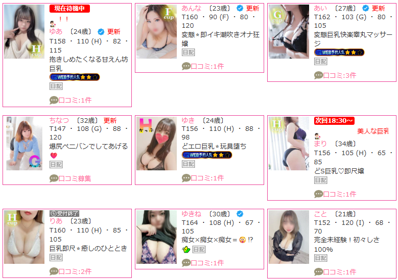 嬢たちはみな、何をすれば男性が喜ぶのか熟知しているのです。嬢によって得意、不得意なプレイはあるものの、おおむね誰を呼んでもハズレはないでしょう。