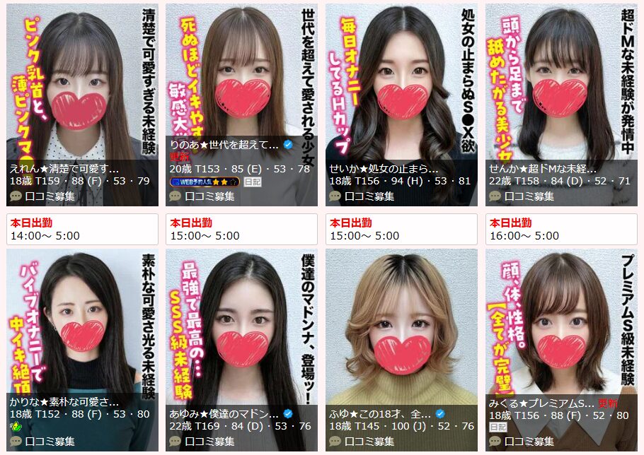 素人の女の子でも、誰が見ても可愛いと思えるレベルがゴロゴロいます。プレイの内容も料金に見合ったものであることが多い印象です。