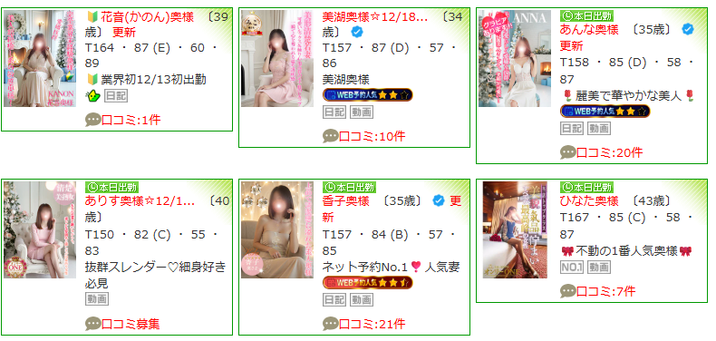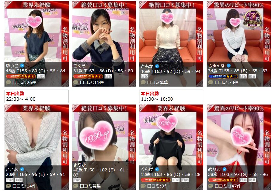 20代後半から40代の女の子が多いため、年上や人妻が好きな人はがっつり心を掴まれるでしょう。