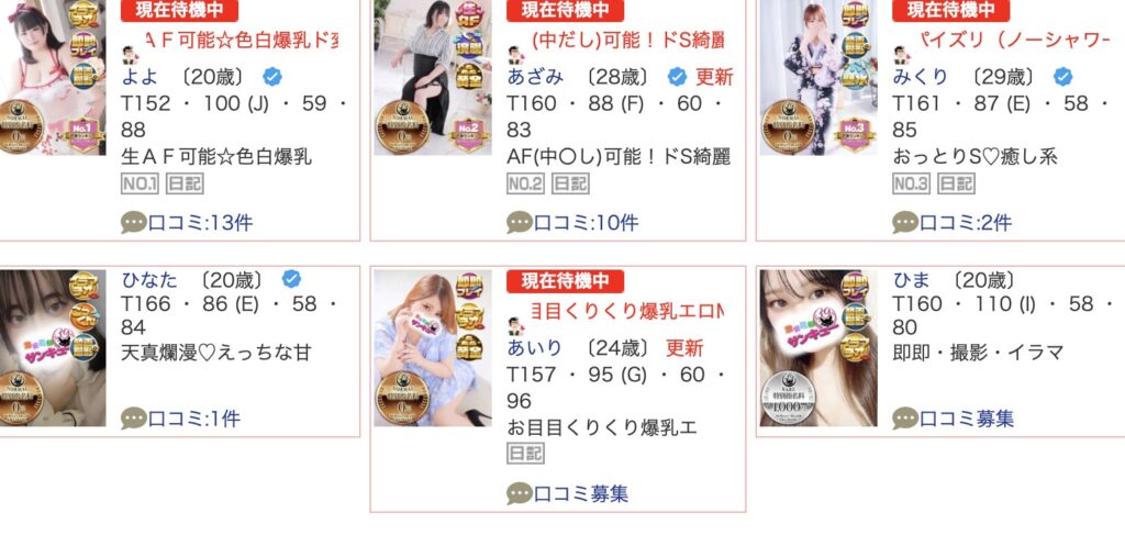 また、「人気嬢はみんなNN」という口コミも見つけました。