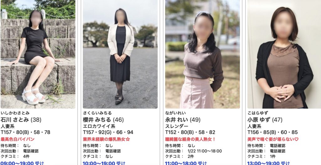 素人の女の子でも、誰が見ても可愛いと思えるレベルがゴロゴロいます。プレイの内容も料金に見合ったものであることが多い印象です。