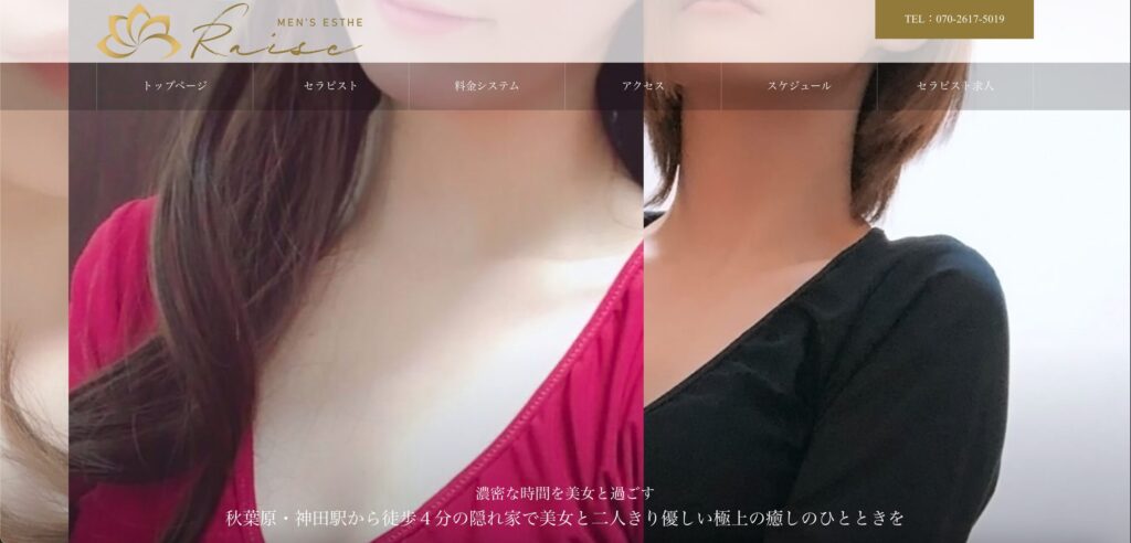 | 店舗名 | 東京アロマエステ | アグレモンMK | Zexterior | Noel | AROMAntic | 楽楽 | 紫苑 | 蝶々20! | Raise | 甘えん坊エステ mamas |