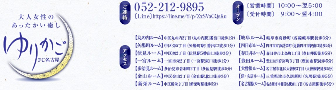 愛知界隈に14ルームをオープンしている老舗のメンエスで、ゆりかごの系列店も少なくありません。